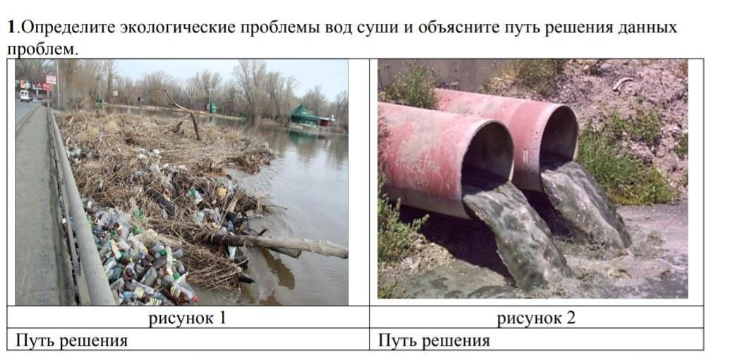 1.Определите экологические проблемы вод суши и объясните путь решения данных