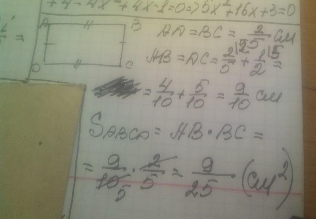 Найдите площадь прямоугольника,если его ширина равна 2/5 см,а его
