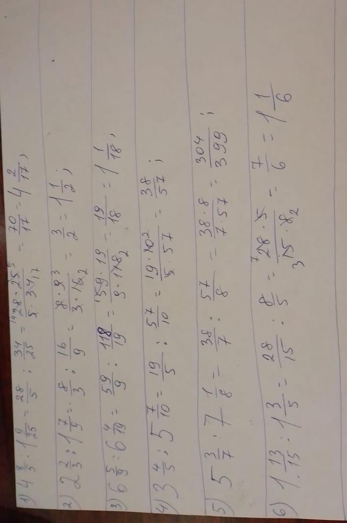 4 8/15 ÷ 1 9/25 2 2/3 ÷ 1 7/9 6 5/9 ÷ 6 4/19 3 4/5 ÷ 5 7/10 5 3/7 ÷ 7 1/8 1 13/15 ÷ 1 3/5 помогите пожалуйста