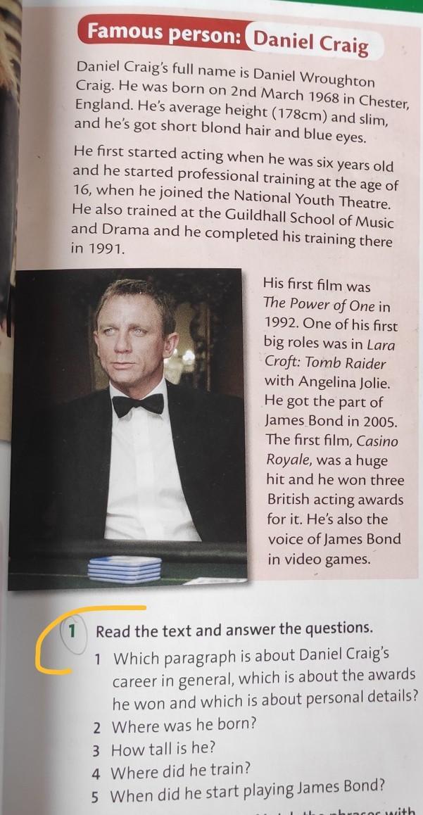 1. The first paragraph is dedicated to Daniel Craig when he first started filming when he was 6 years old. He received professional training. He also studied at the Guildhall School of Music and Drama and completed his studies there in 1991.