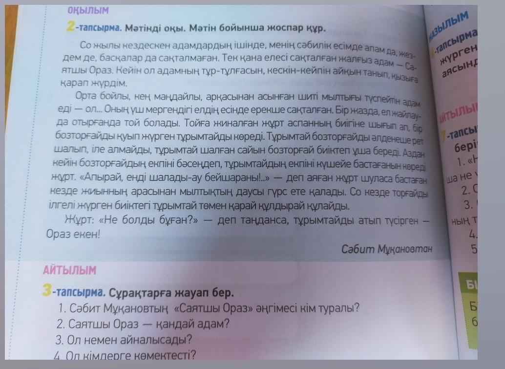 1) Баланың есіне Саятшы Ораз түскені