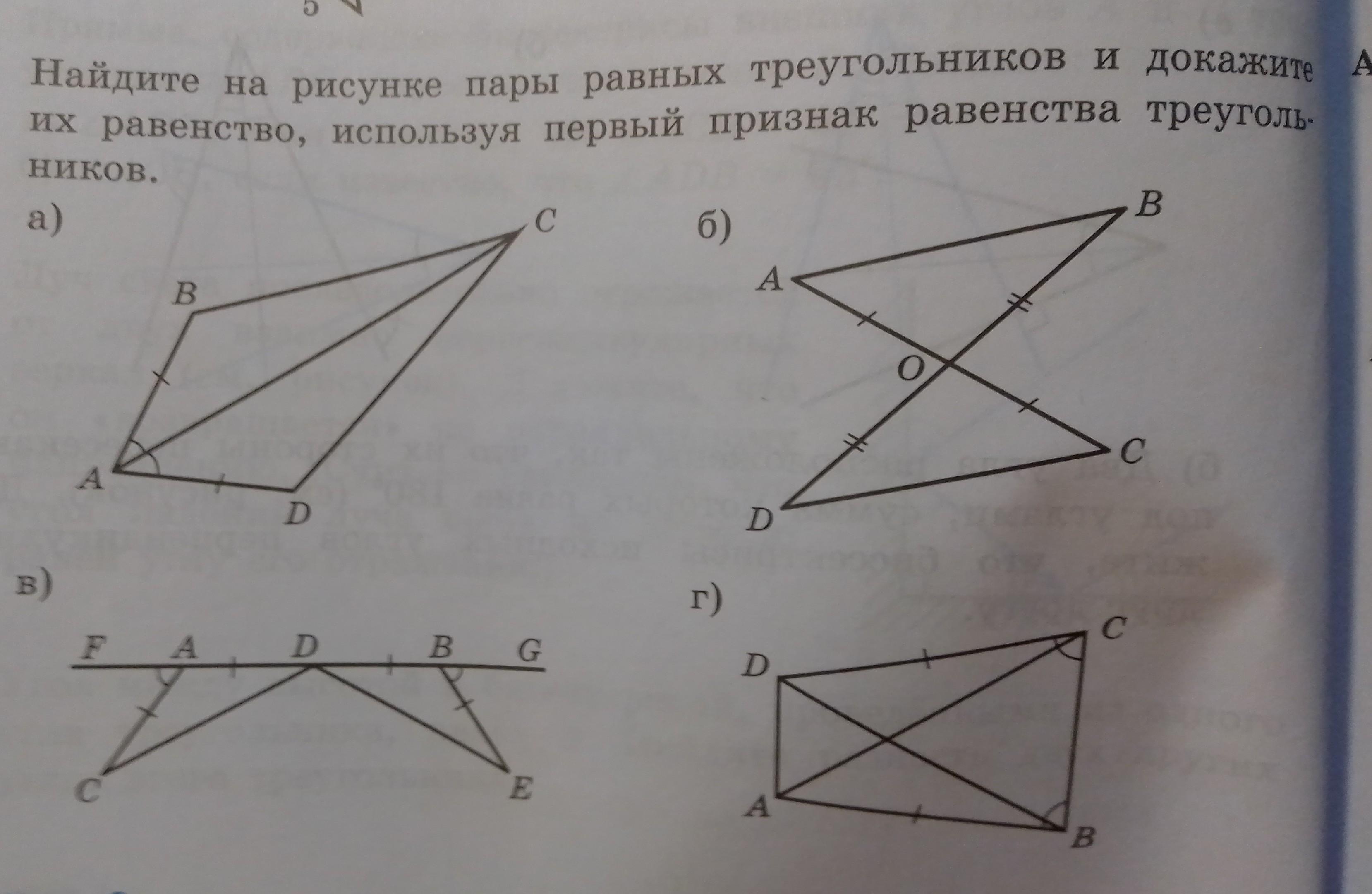 Найдите на рисунке пары равных треугольников и докажите их равенство, используя первый признак равенства треугольников. ДАЮ 35 БАЛЛОВ
