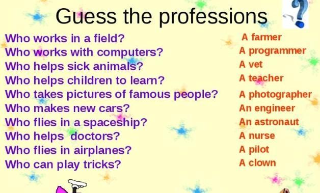 Famer programmer vet teacher photographer enginner astronom.nurse pilot clown