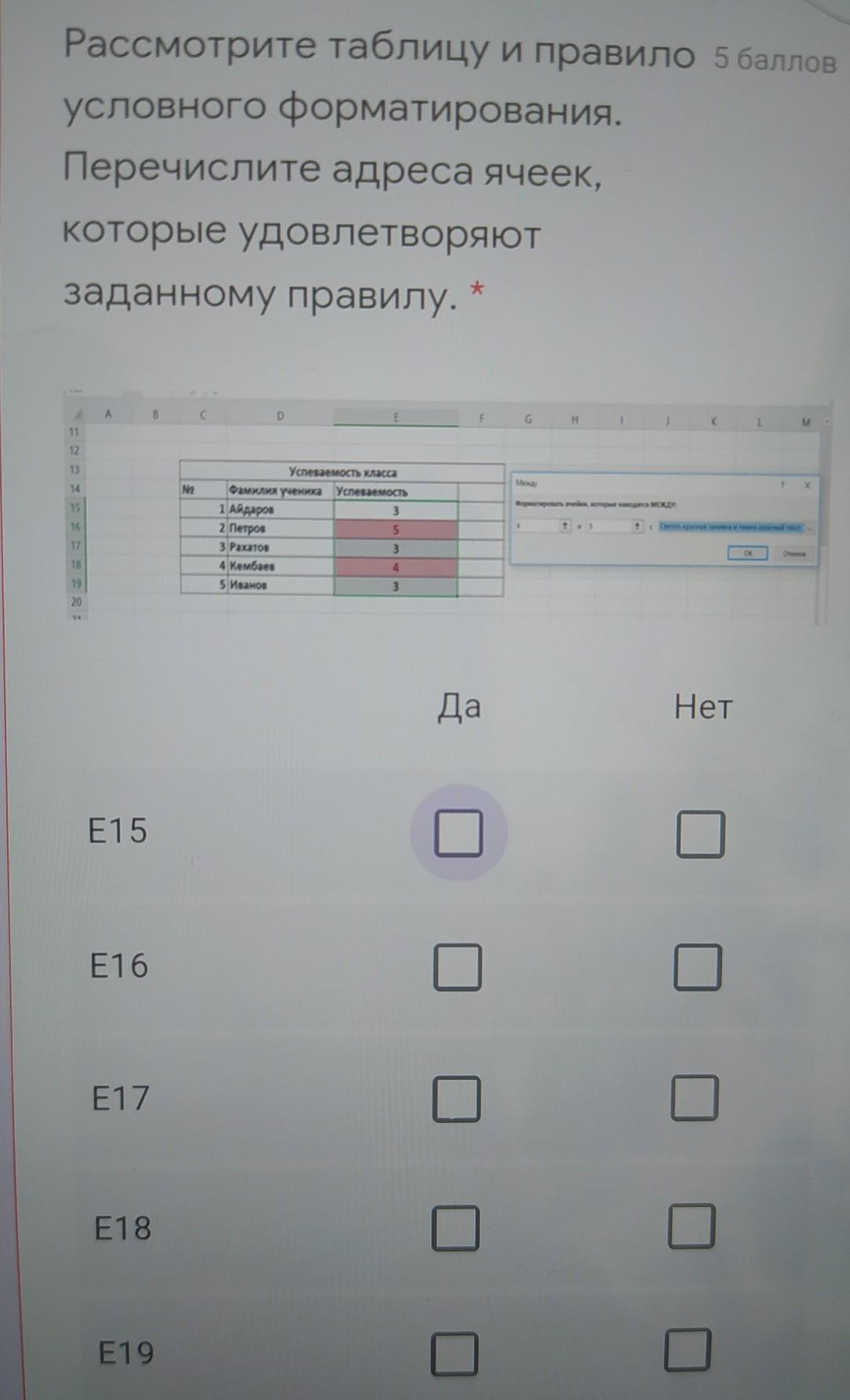 Адреса ячеек С5, С8, С9 диапазона С5:С9 ,удовлетворяющие заданному правилу. (это правильно!)