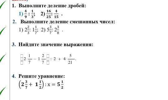 1)4/9 : 1/3 = 4/9 х 3/1 = 4/3 х 1/1 = 4/3 = 1 1/3