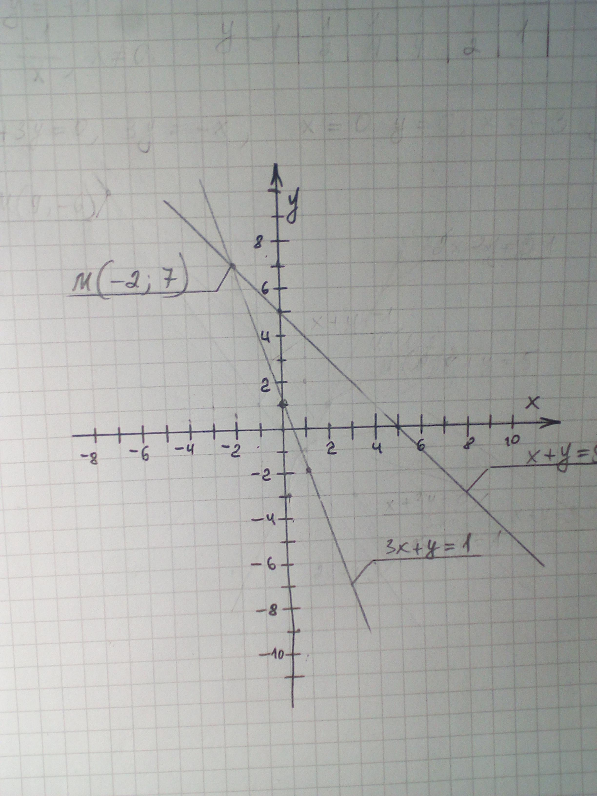 3x+y=1 ; у=1-3х; х=0 у=1; х=1 у=-2