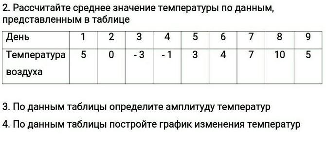 Среднее значение: все сложить и разделить на 9= 30/9=10/3=3 1/3=3,333°