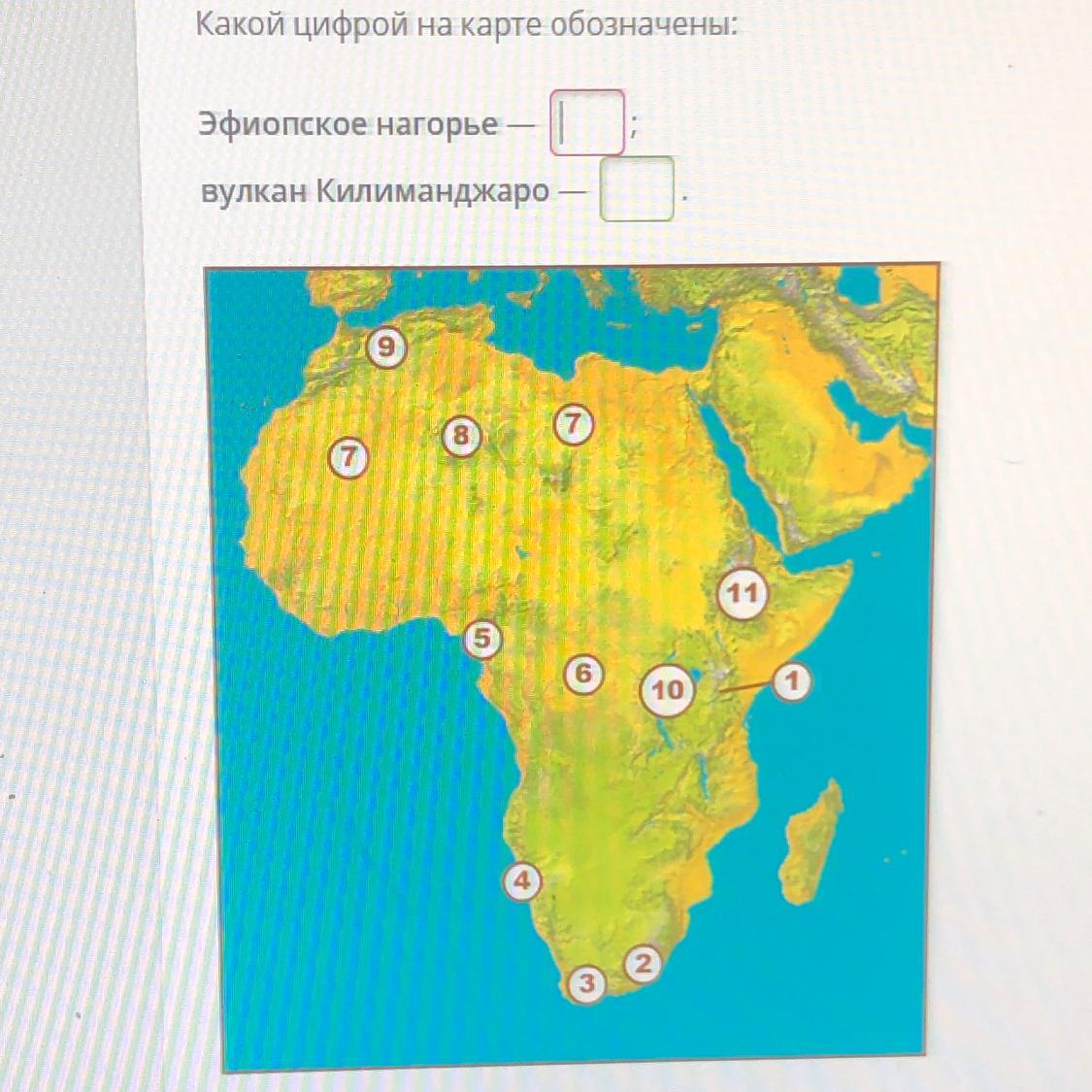 вулкан Килиманджаро обозначен на карте под циврой 1.