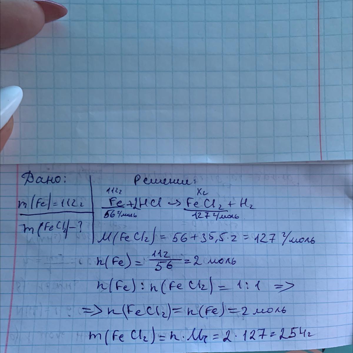 Какая масса соли образуется при взаимодействие железа масой112г соляной кислотой