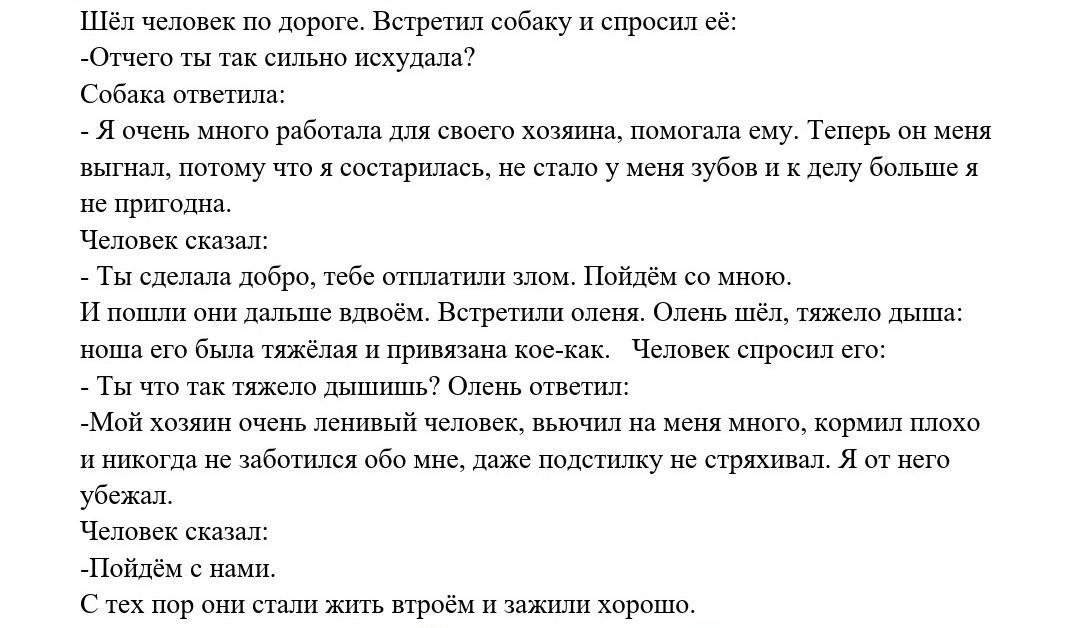 Шёл человек по дороге. Встретил собаку и спросил её: