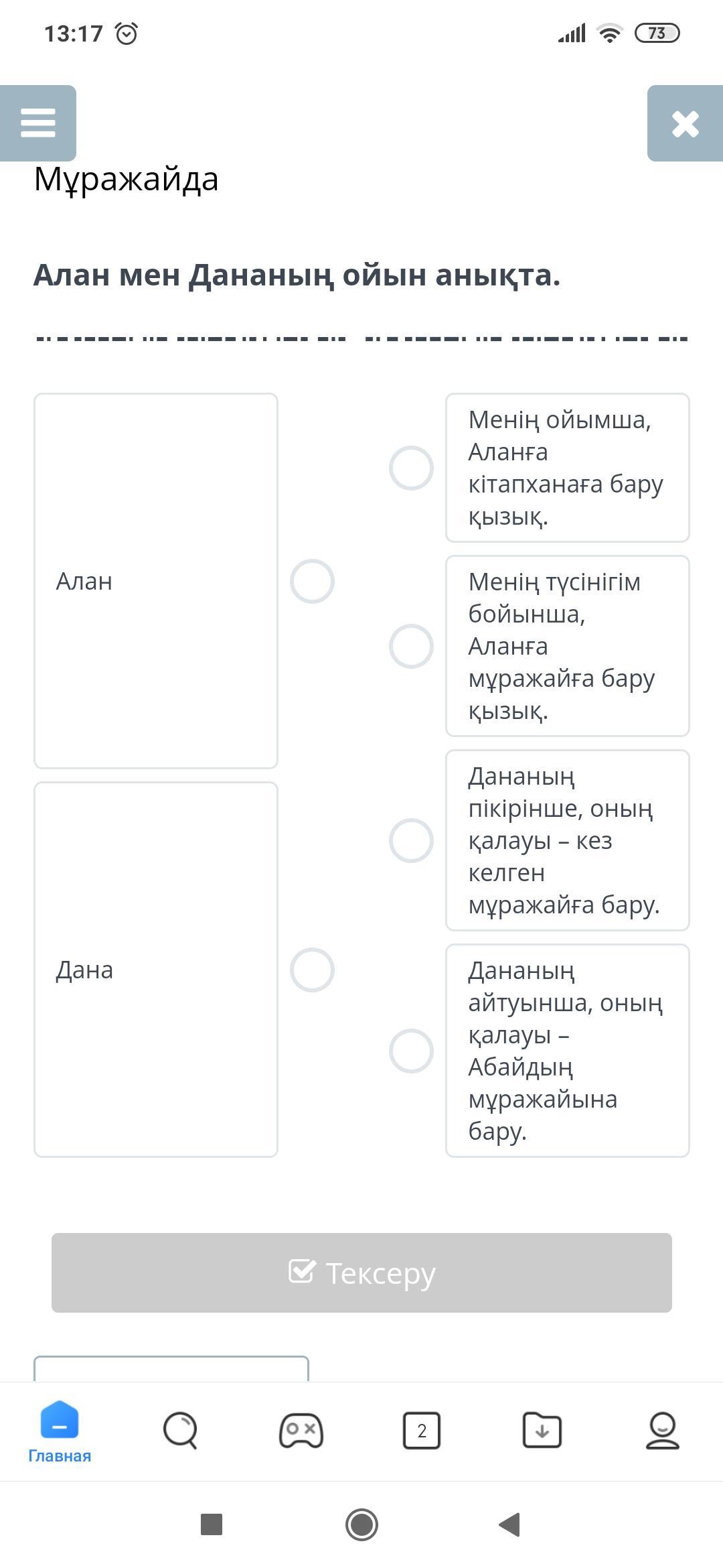 Менің түсіңгенім бойынша Алаңға мұражайға бару қызық