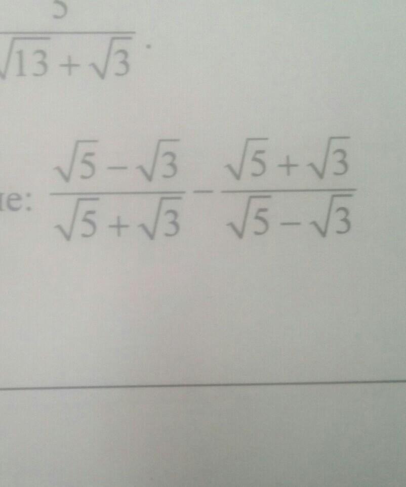 1)√5 - √3 / √5 + √3 = √5-3 / √5+3 = √2/√8 = √2:8 = √0,25 = 0,5
