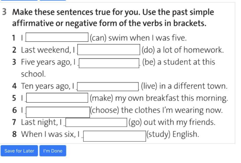 Ответ: вообще, в задании нужно ответить так, как у Вас было в самом деле, в 5 лет умели плавать и т.д. И Вы сами решаете было такое или не было, и соответственно какая форма глагола тут нужна - отрицание или утверждение)