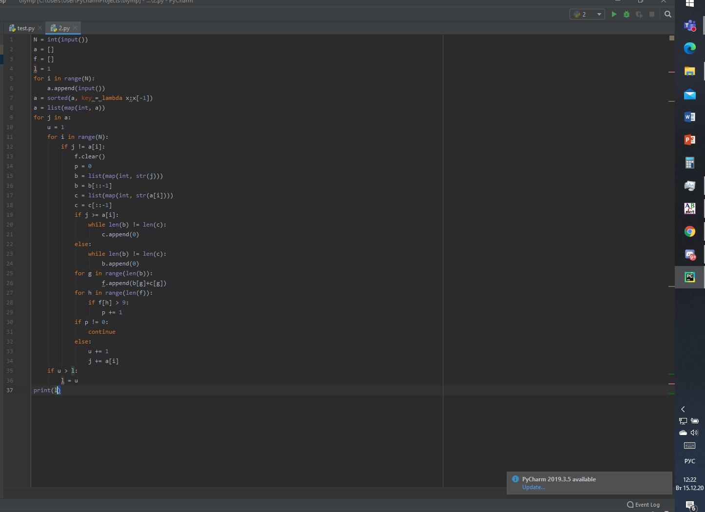 Маленький мальчик нашёл учебник по арифметике и прочитал главу про сложение многоразрядных чисел. К сожалению, он не смог толком понять, что такое перенос и постоянно забывал его делать. Он решил изучить, а сколько максимально чисел можно сложить правильно, не сделав ни одного переноса. В качестве данных он взял числа w1 … wN из какой-то таблицы в том же учебнике.