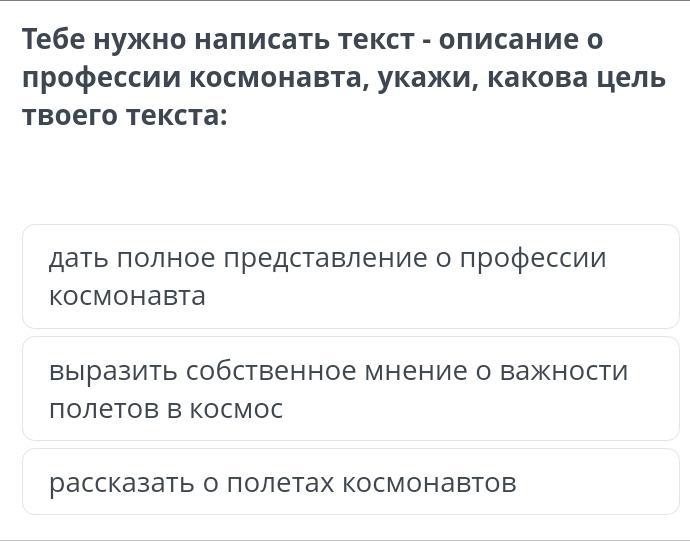 Нужно написать текст описание о профессии космонавта ,укажи,какова цель твоего текста: