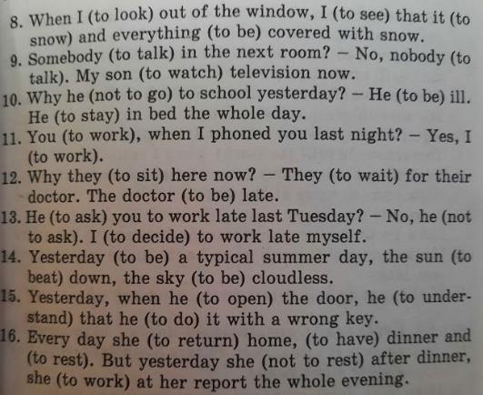 8. looked, saw, is snowing, is
