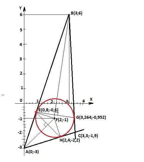 Найдем уравнение прямой EF, как прямой, перпендикулярной к прямой АВ и проходящей через точку F(2;-1) по формуле: