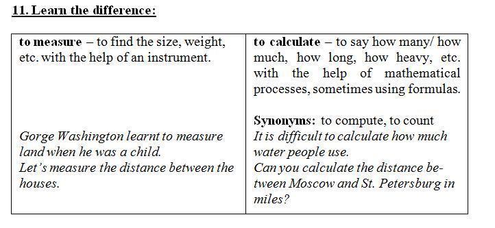 (Заполните пробелы одним из приведенных выше слов. Добавьте необходимые окончания к глаголам) 12. Fill in the gaps with one of the words above. Add the necessary endings to the verbs (-s, -ed). Слова выше прилагаю в фотографии 1) First we ___ the room, then ___ how much wallpaper we needed to decorate it. 2) He asked the shop assistant to ___ a kilo of sugar. 3) The doctor ___ the patient’s temperature. 4) He tried to ___ how much he had spent on gasoline. 5) There are special machines which ___ money. 6) Meteorologists ___ atmospheric pressure (давление) every day. 7) It is hard work to ___ the surface area of a continent. 8) Water clock ___ time by the fall or flow of water. 9) He always ___ how much sugar the family consume (потребляет) a week. 10) Ammeter (амперметр) ___ direct (постоянный) and alternating (переменный) current (ток) with accuracies of from 0.1 to 0.25 percent. 11) Harkins made one of the first attempts (попытки) to ___ the proportions of elements in the universe. 12) Magnetometer ___ magnetic field. 13) She ___ the room before buying the carpet.