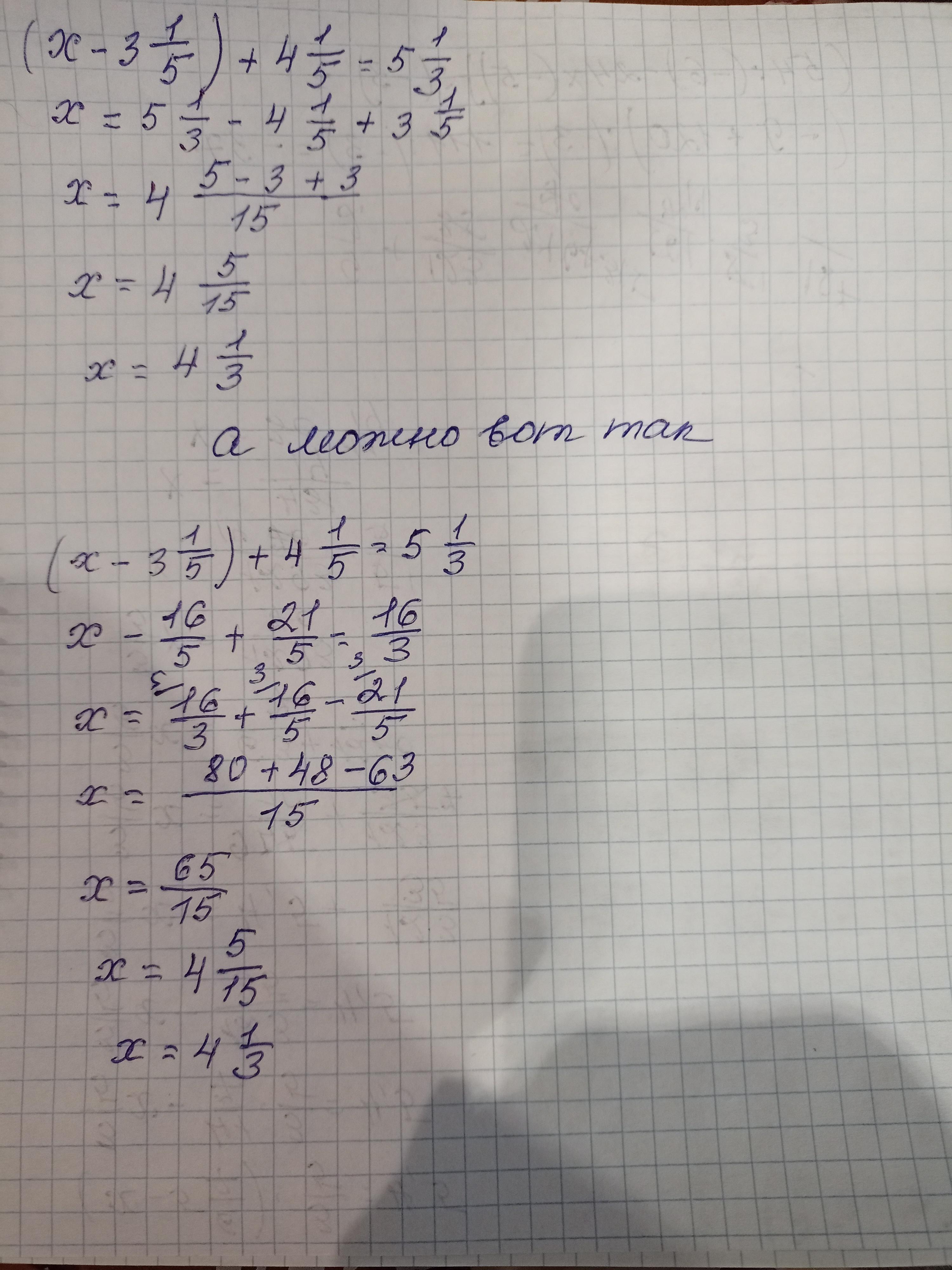 (x - 3 1/15) + 4 1/15 = 5 1/3