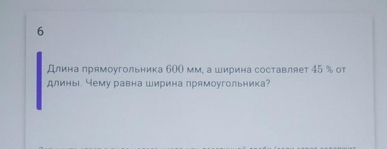 длина прямоугольника 600мм, а ширина 45% от длины. чему равна ширина прямоугольника?