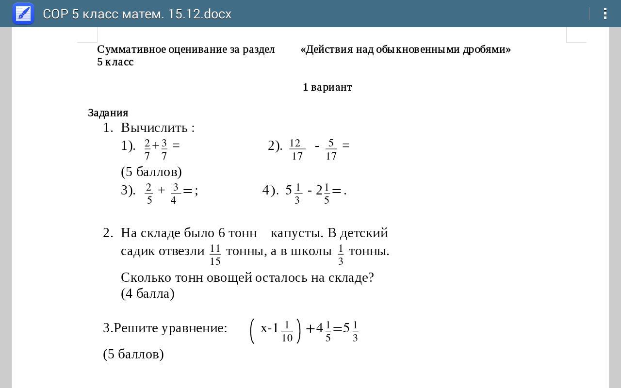 2) 6 - 11/15 - 1/3 = 74/15 = 4 14/15(т)