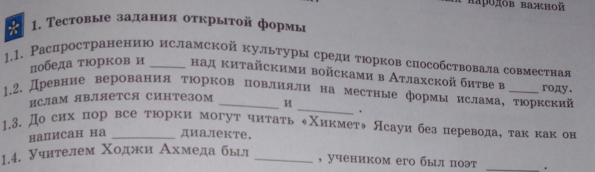 1.1. Распространению исламской культуры среди тюрков способствовала совместная победа тюрков и арабов над китайскими войсками в Атлахской битве в 751 году.
