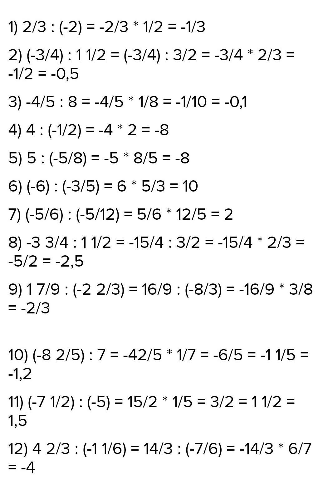 Вычислить 3 2/3+1/9;3-1 1/7;-5*3 3/10;2 2/3:(-4);-1 2/3-2 1/3;1 1/5*(-5/12);-3 1/9:(-1 1/6);-2 3/5*0