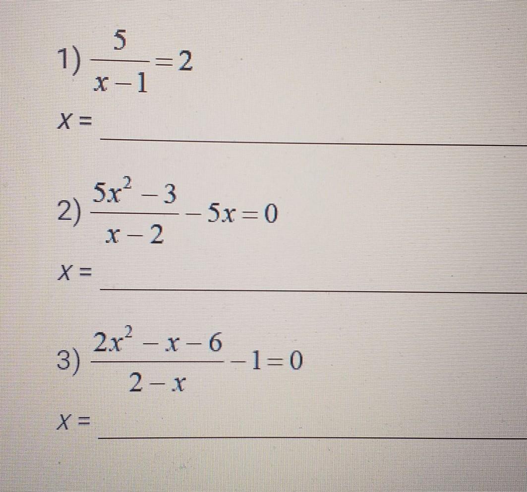 2) (5x²-3)/(x-2) -5x=0, где x-2≠0; x≠2
