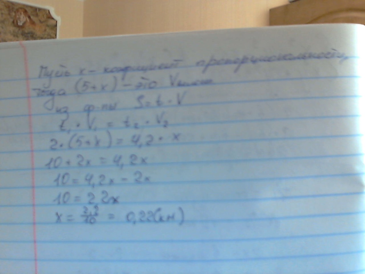 X = 21 : 2.2 = 21 : 115 = 10511 (кмчас) - скорость велосипедиста