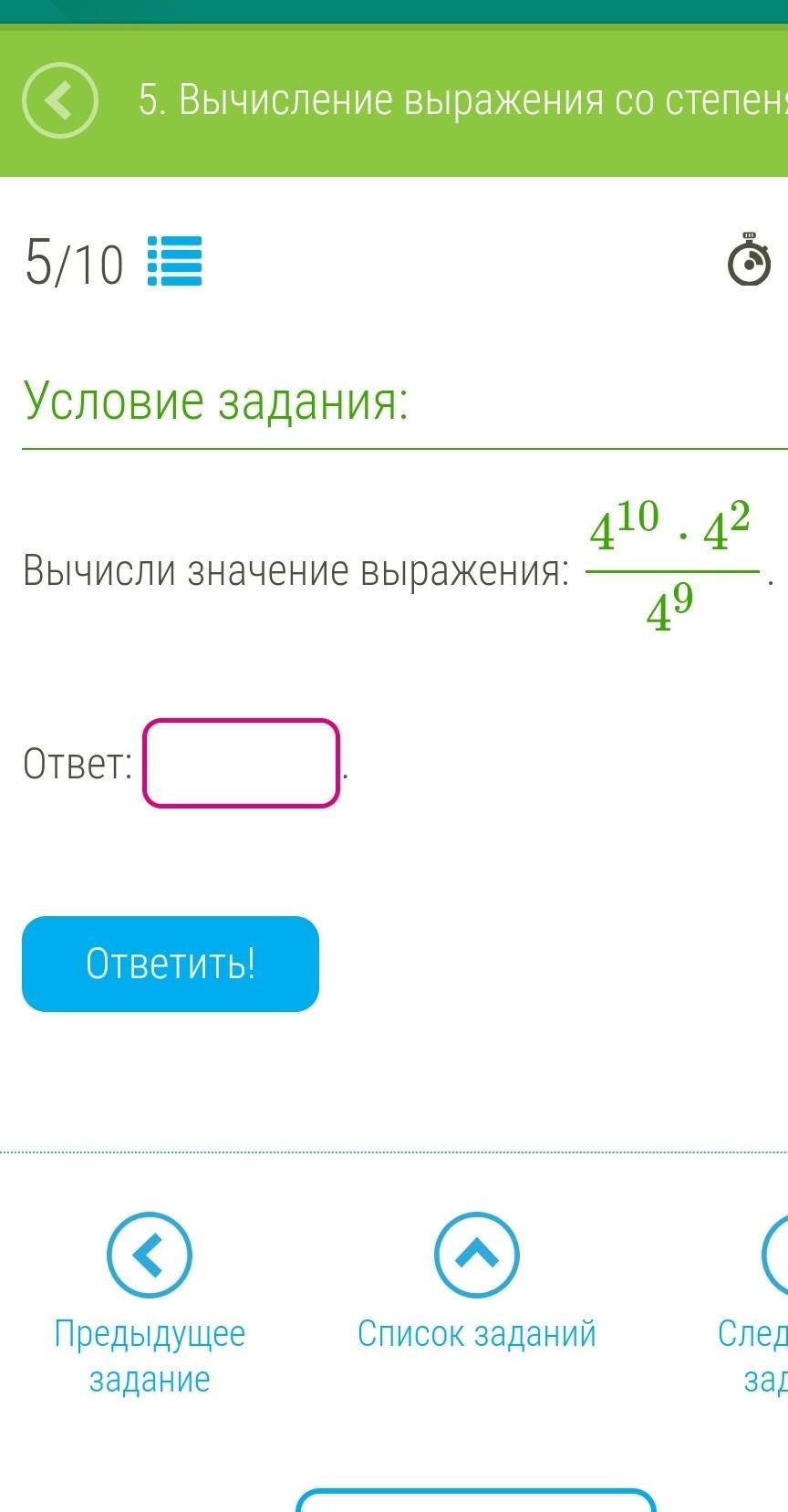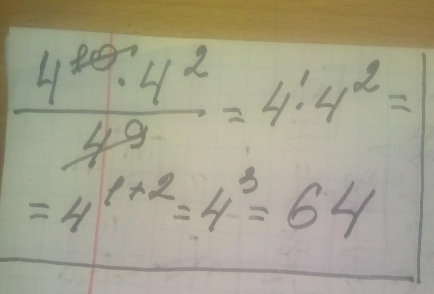 4^10*4^2/4^9=4^12/4^9=4^3 или 64