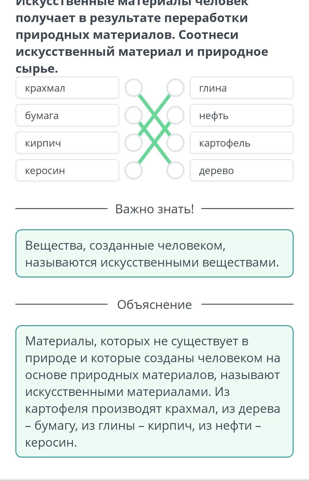 Искусственные материалы человек получает в результате переработки природных материалов.