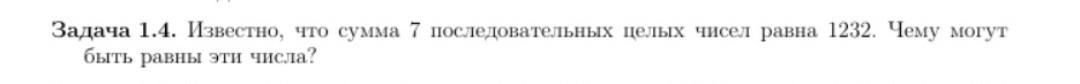 Известно что сумма 7 последовательных чисел равна 1232. Чему могут быть равны эти числа