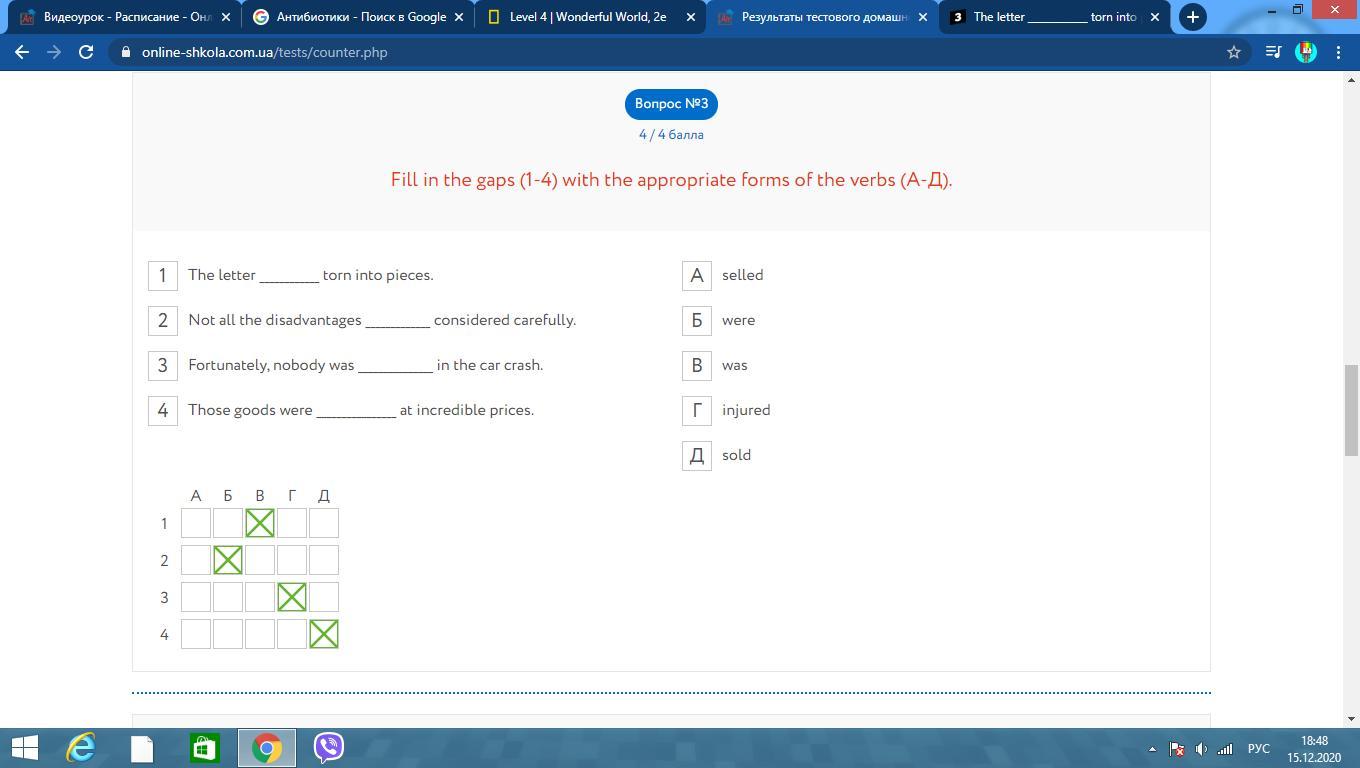 Fill in the gaps (1-4) with the appropriate forms of the verbs (A-Д).
