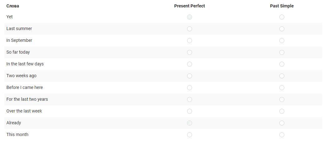 Помогите пожалуйста. Выберите правильные ячейки, где past simple, а где - present perfect.Даю 50 баллов