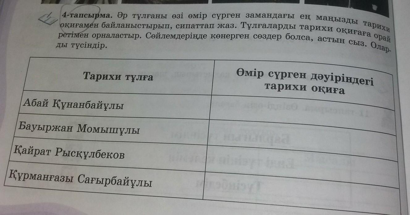 4-тапсырма. Әр тұлғаны өзі өмір сүрген замандағы ең маңызды тарихи