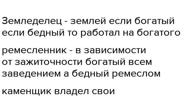 Земледелец - землей если богатый если бедный то работал на богатого
