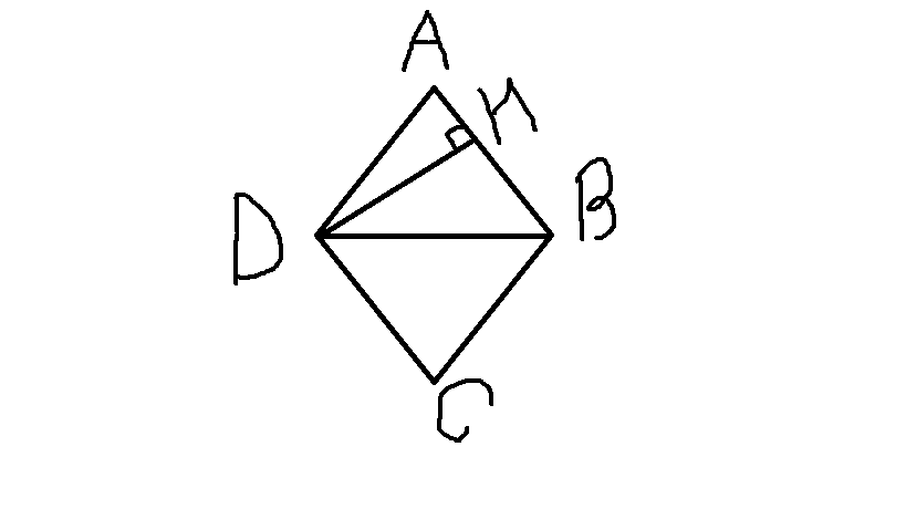 Проведем диагональ BD. Она разделит ромб на два равных треугольника(по трем сторонам, где диагональ - общая сторона). Значит, площади этих треугольников равны, а значит, площадь ромба будет равна удвоенной площади треугольника ABD. А площадь ABD мы можем найти, зная высоту и сторону, к которой эта сторона проведена.