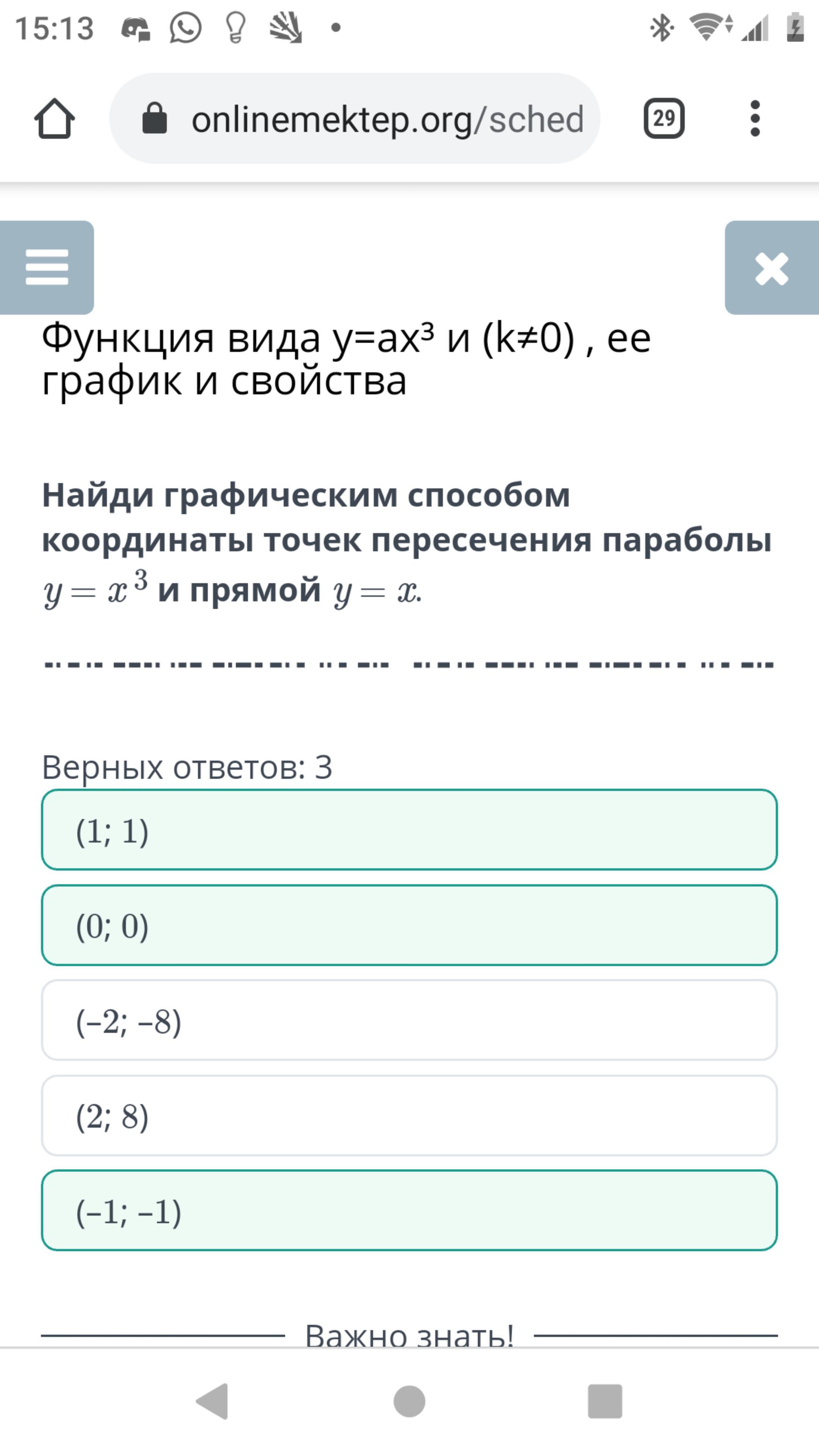 у кого верных 2 то (1; 1) (–1; –1)