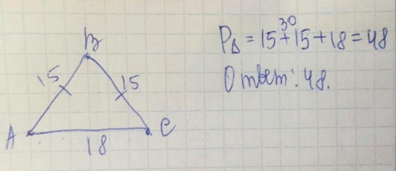 Равнобедренная сторона будет 15 см, а основание будет равно 18 см