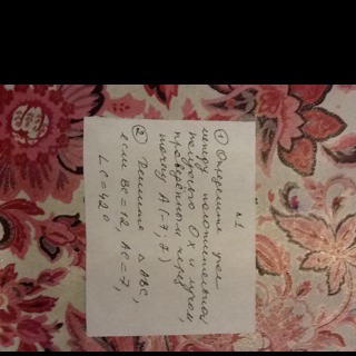 Задание на фото (все 2) 1) определите угол между положительной полуосью Ox. И лучем, проведенным через точку А (-7;7) 2) решить треугольник авс если вс = 12 ас = 7 угол с = 42