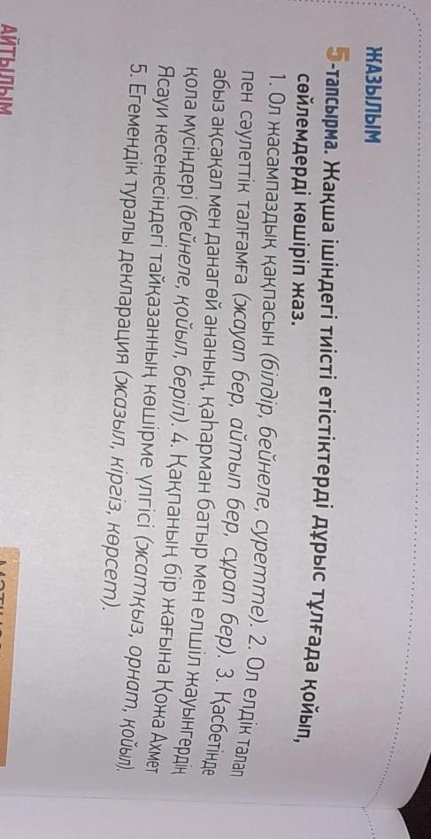 Жақша ішіндегі етістіктерді дұрыс таңдап, сөйлемдерді көшіріп жаз/ выбрать правильный глагол в скобках и списать все предложения