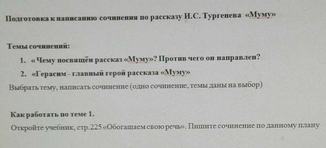 Подготовка к написанию сочинения по рассказу И.С. Тургенева «Муму»