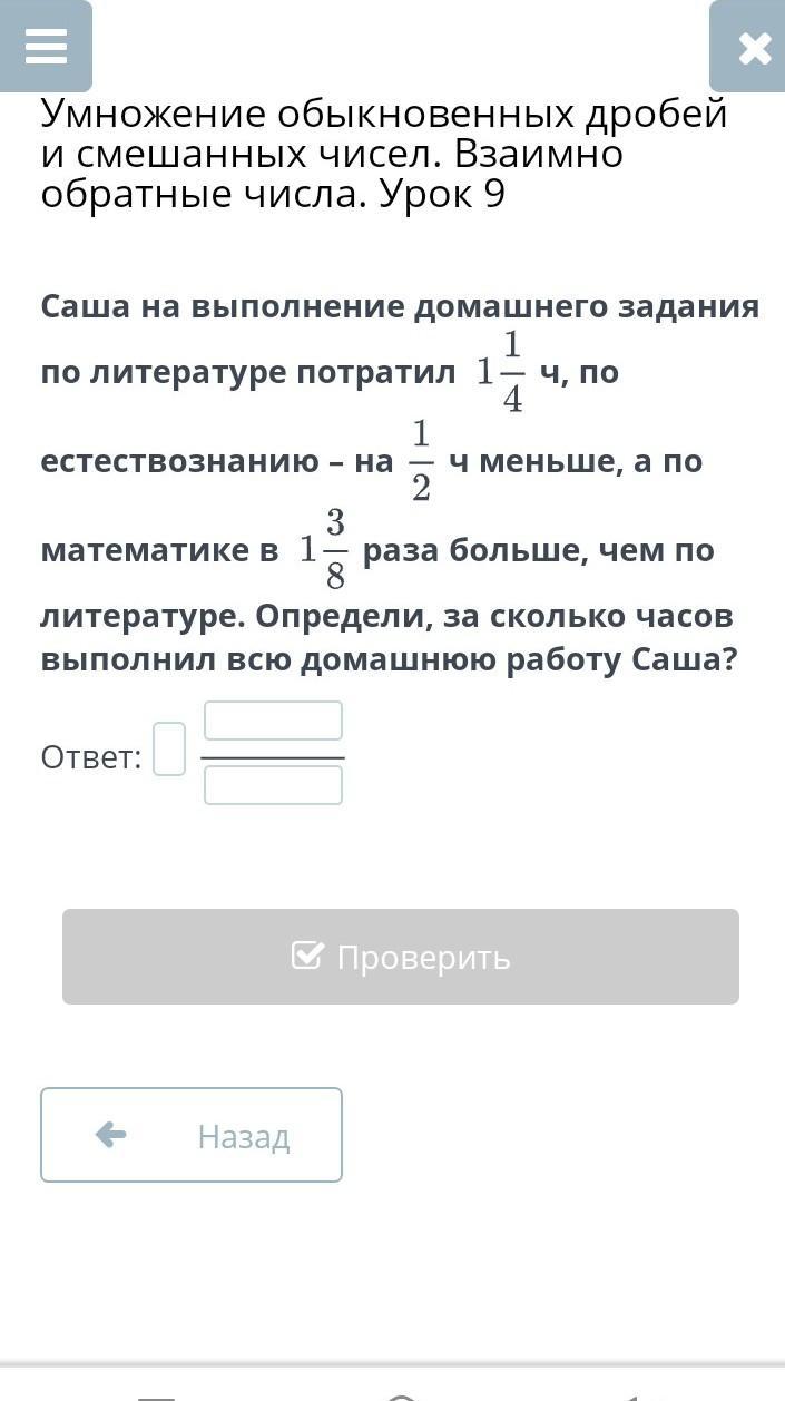 раза больше, чем по литературе. Определи, за сколько часов выполнил всю домашнюю работу Саша?
