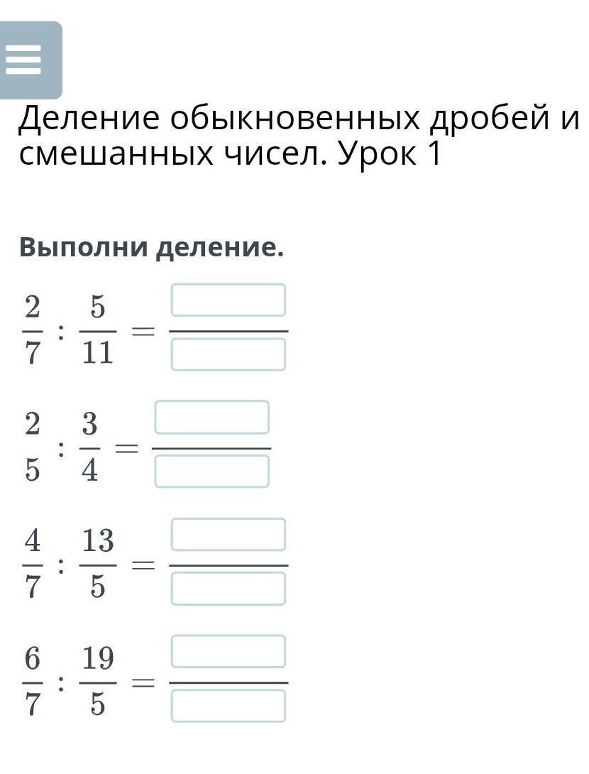 Деление обыкновенных дробей и смешанных чисел. Урок 1