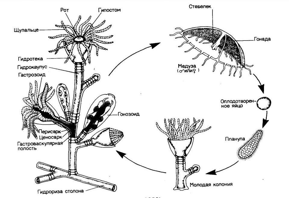 на картинке снизу пример жизненного цикла другого кишечнополостного, где видно, что сначала образуется оплодотворённое яйцо (зигота)