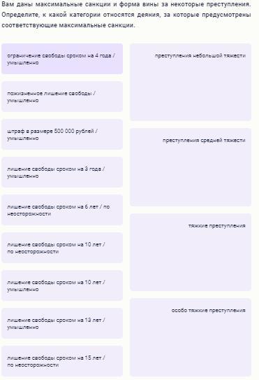 Вам даны максимальные санкции и форма вины за некоторые преступления. Определите, к какой категории относятся деяния, за которые предусмотрены соответствующие максимальные санкции.