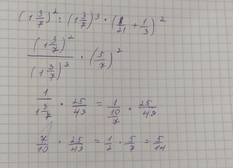 (1 3/7)²:( 1 3/7)³ * (8/21 + 1/3)²