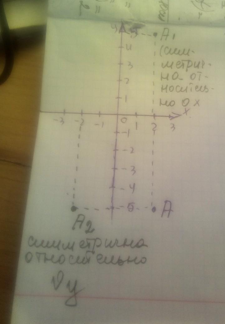 a) построить точку A2(x;y), симметричную относительно оси OX в точке A(2; -5).