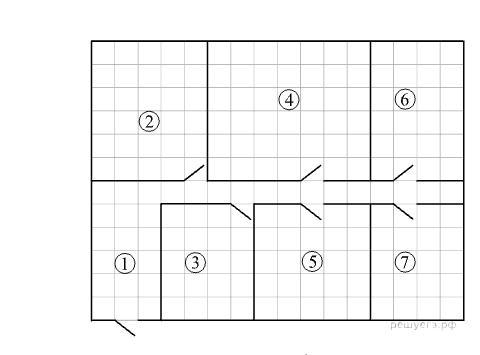 На плане изображена схема квартиры (сторона каждой клетки на схеме равна 1 м). Квартира имеет прямоугольную форму. Вход и выход осуществляются через единственную дверь.