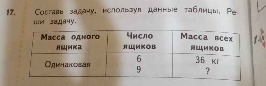 решить так: 36/6= 6(кг) - масса 1 ящика